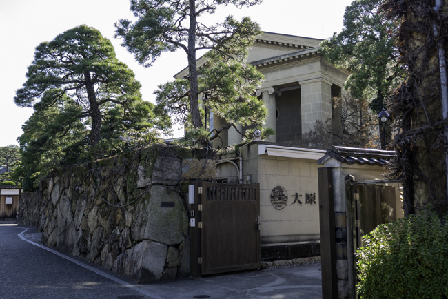 有隣莊,黃綠色的牆體加上墨綠色磚瓦,在黑白配色為主的倉敷美觀地區最特別的存在,很難不注意到它;大原美術館,獨特的希臘立柱型建築風格,外加超多指引標的,同樣的也非常好找尋到它。基本上只要找到這兩者,大原本邸也就附近了。
