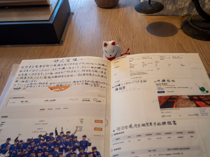 在選擇筆記本的過程中,曾有一度考慮過要不要用 Traveler’s Notebook ,只是 Traveler’s Notebook 的 Regular size 並非標準 A4 或 A5 尺寸,對於常見的的A4 或 A5 宣傳單,我沒有自信能夠排好版面;其次本子 64 頁的厚度我也覺得不夠,若是單純規劃行程還沒問題,若要塞進一堆資料的話,怕是兩三本都不一定能滿足。而後證明我的想法是對的,這趟和菓子進修之旅的總頁數高達兩百頁,且還是本子尺寸還比 Regular size 寬的 A5,若是換成 Regular size 的話,恐怕要四五本才能把回憶收納好了。
