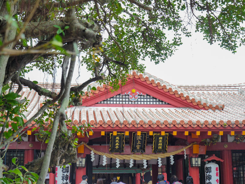 波上宮本身給人的感覺和日本本島的神社有點不一樣,最明顯的大概就是這裡滿滿的榕樹,日本本島的神社多半是種植銀杏、楓樹、櫻花之類的植物,但波上宮最多的是我們熟悉的榕樹,也難怪有些日本人會覺得沖繩不像「典型的日本」,這裡有海、有風、有大榕樹,連屋瓦的鋪設方式也是沖繩樣貌,這一切完全與日本本島截然不同。