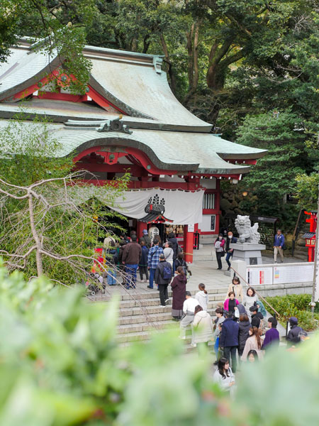 沒想到剛抵達神社,就被眼前的人潮嚇了一跳。事前查資料時,網上的照片看起來都很悠閒寧靜,但我到的這天現場幾乎可以說是人潮洶湧,本殿參拜還需要排隊,不過運氣還不錯,只小排一下下就輪到了。
